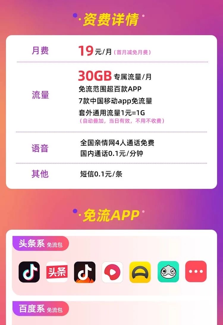 国内通用数据流量: 15 GB定向数据流量: 国内阿里全系定向流量15GB、国内咪咕视频定向流量15GB。被叫: 全国(不含港澳台)免费。